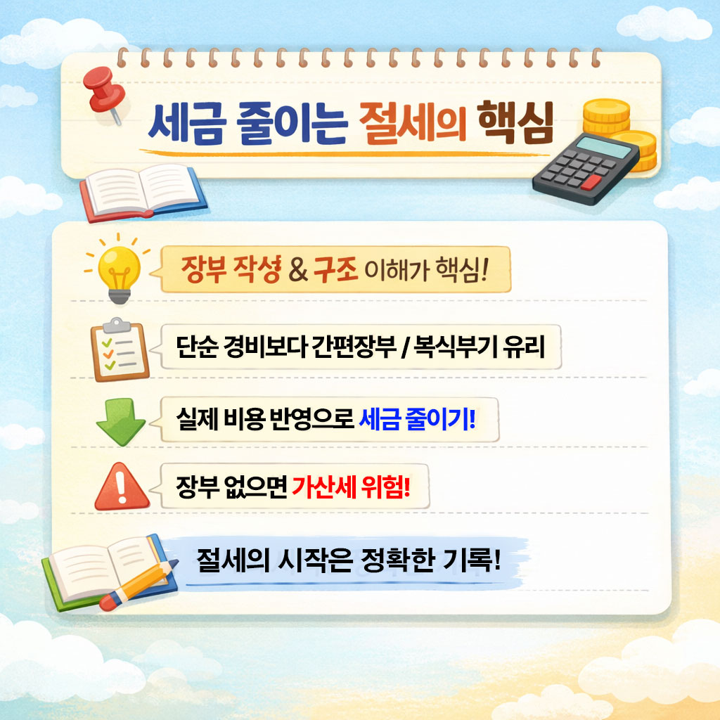 | 절세 핵심 | 절세의 핵심은 장부 작성과 구조 이해입니다 |
