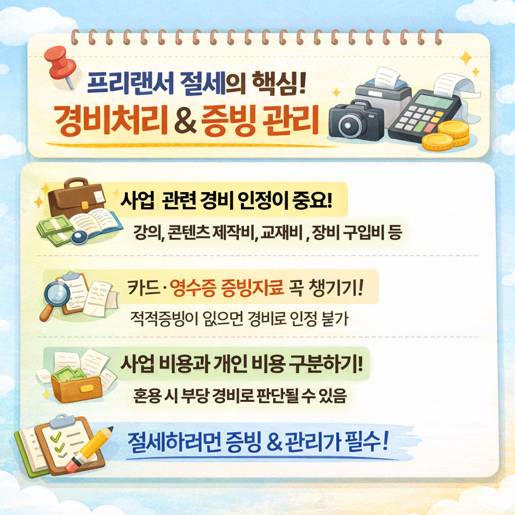 교육업 프리랜서에게 가장 중요한 절세 포인트는 경비처리입니다.