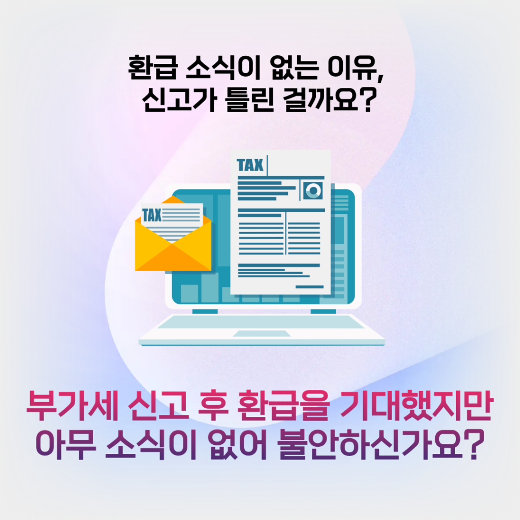 특히 1월과 7월 부가세 신고 기간에는 환급을 기대했다가 아무 소식이 없어 불안해지는 경우가 적지 않습니다.