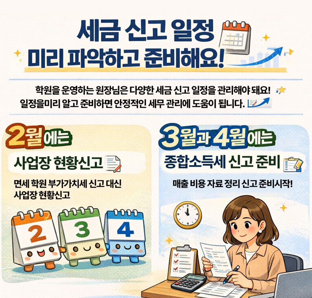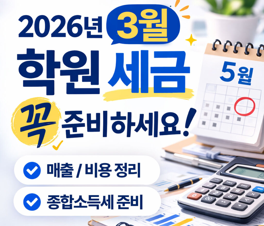 2026년 3월은 학원 원장님들에게 세무적으로 매우 중요한 시기입니다.