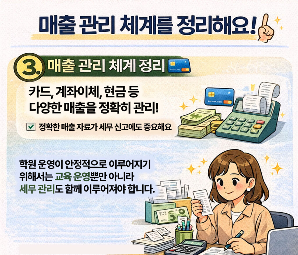 학원 운영이 안정적으로 이루어지기 위해서는 교육 운영뿐만 아니라 이러한 세무 관리도 함께 이루어져야 합니다.